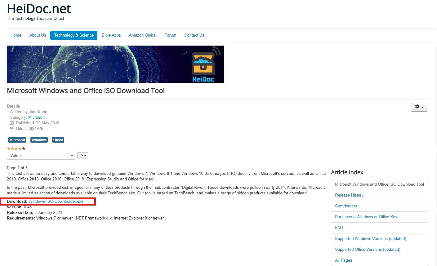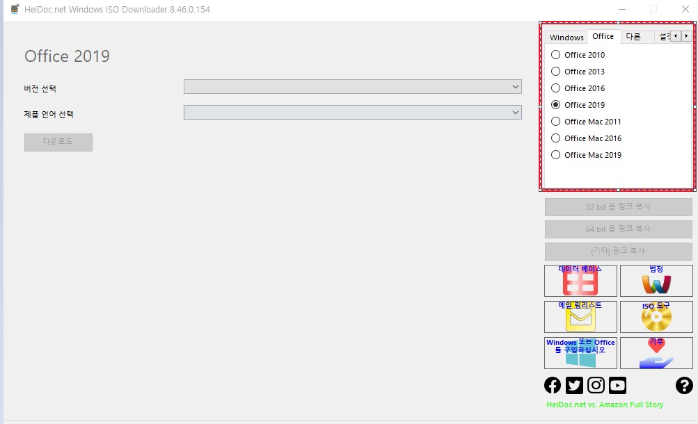 둘째 네모 빨간 박스 안에 있는 Microsoft window and Ofiice ISO Download Tool를 클릭한다
