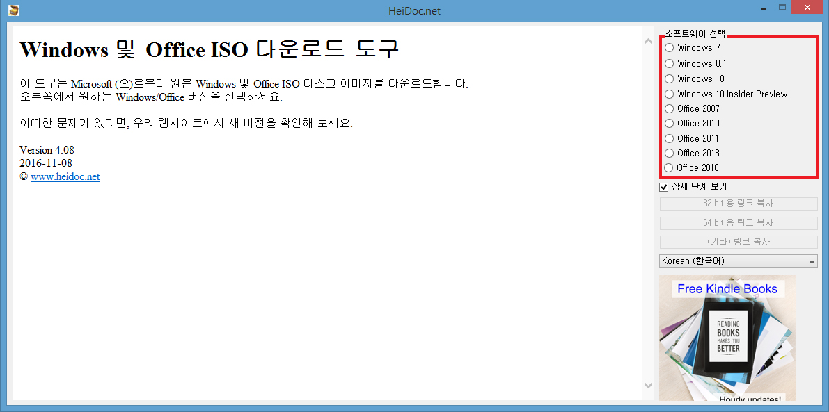 지정된 경로에서 파일을 확인 후 더블클릭해서 실행하면 Windows 및 Office ISO 다운로드 도구 창이 열릴 텐데 우측 소프트웨어 선택에 해당되는 걸 체크해 주세요.