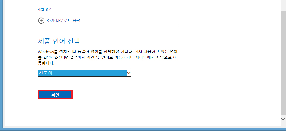이후 제품 언어 선택에서 목록을 눌러서 한국어로 설정하여 [확인]을 누른 다음 사용 중인 PC 운영 체제 비트에 맞게 다운로드를 누르고 저장을 눌러 마이크로소프트 오피스 2010 파일을 내려받으면 될 거예요.