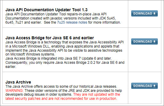맨 끝에 Java Archive 다운로드 버튼을 누르고 들어가세요.