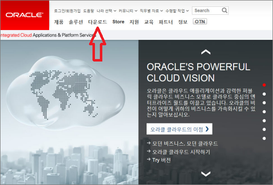 소프트웨어, 하드웨어 전문 회사인 오라클 홈페이지입니다.