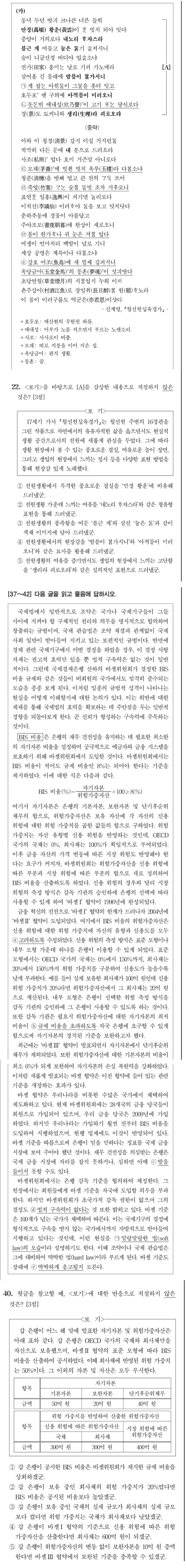 2020 수능 1교시 국어 22번 문제 신계영, 월선헌십육경가